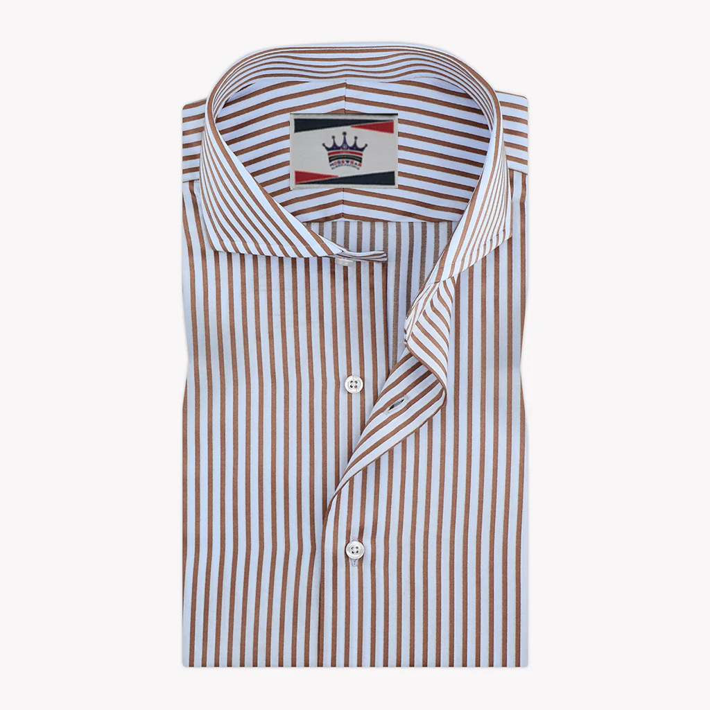 The Mosswear Light Blue Shirt with Khaki Brown Stripes exemplifies a balance of calm sophistication and subtle detail, made from high-quality cotton that offers breathable comfort all day long. The light blue base is enhanced by khaki brown stripes, creating a refined contrast that is both professional and effortlessly stylish. Tailored with 22 stitches per inch, this shirt is crafted for durability and a flawless, smooth appearance, while mother-of-pearl buttons lend a touch of understated luxury.